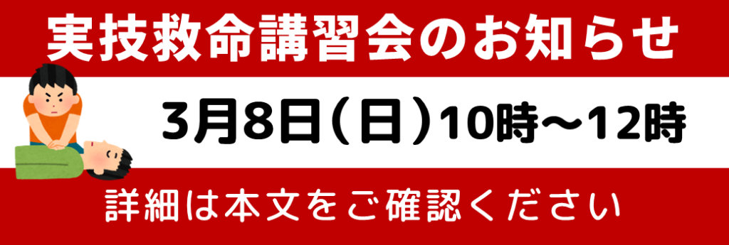 ※ 当日までにeラーニング「普通救命講習編」を各自受講した上で、受講証明証を提示すること。