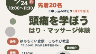 お知らせ 頭痛をテーマにした講座を開催します(倉敷5月24日開催)
